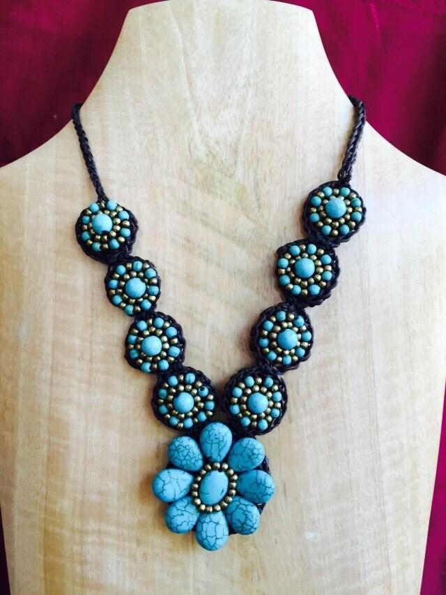 Stone necklace braided rope.
