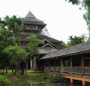 จาก หอคำน้อย เมื่อเดินผ่านป่าสมุนไพรไปทางทิศใต้ จะพบอาคารหลังใหญ่ คือ “หอแก้ว” ซึ่งมีพื้นที่แบ่งออกเป็น 2 ส่วน ส่วนหนึ่งใช้เป็นที่ทำกิจกรรม เช่น การประชุมสัมมนา จัดเลี้ยง ฯลฯ มีระเบียงยื่นลงไปในสระว่ายน้ำกว้างใหญ่ เหมาะแก่การสังสรรค์อันรื่นรมณ์ และปลอดโปร่งใจ อีกส่วนหนึ่งเป็นพื้นที่จัดนิทรรศการเกี่ยวกับไม้สัก ทั้งในด้านพฤกษศาสตร์ และในด้านเป็นวัสดุอันเลื่องชื่อสำหรับสร้างสรรค์งานศิลปะ